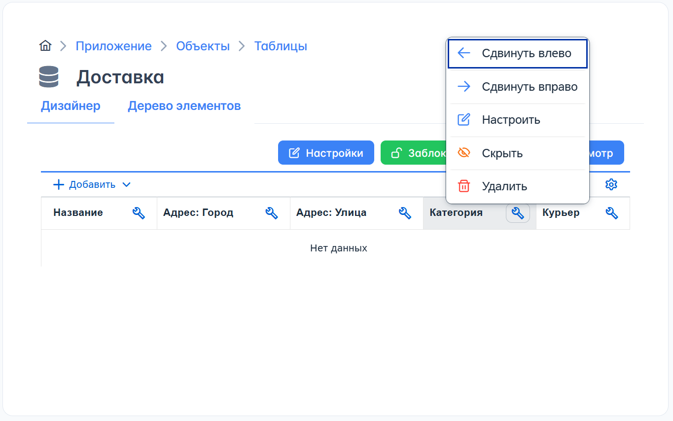 п.7,п.9.Дизайнер таблиц, сдвигаем колонки, ставим ширину колонок